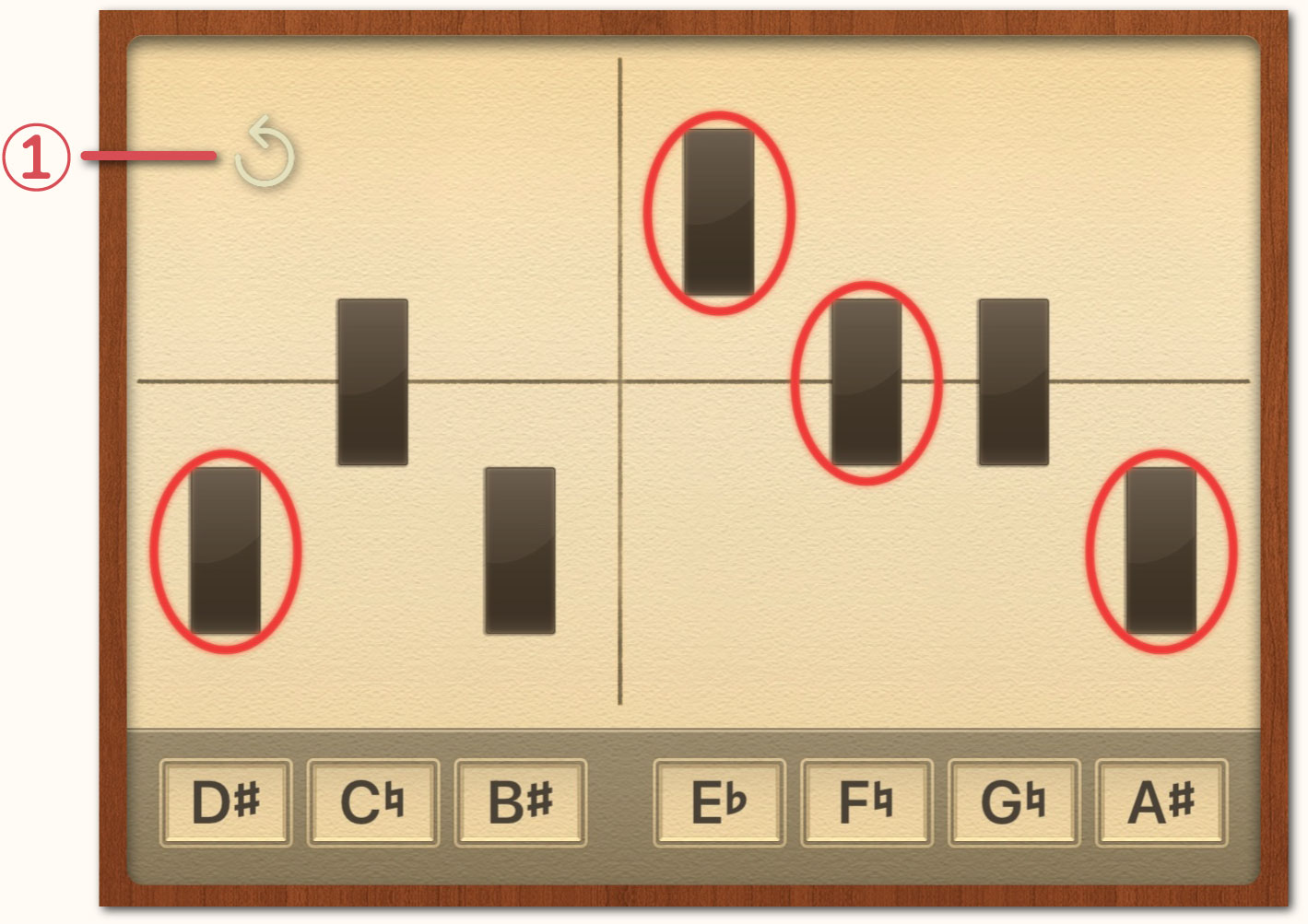 アプリケーション内のスケールおよびコード・ネームの表記は、ハープがフラットを基本とする楽器であること、また表記の統一性と視認性の向上を目的として、ルート名の異名同音はすべてフラット(♭)表記に統一しております。